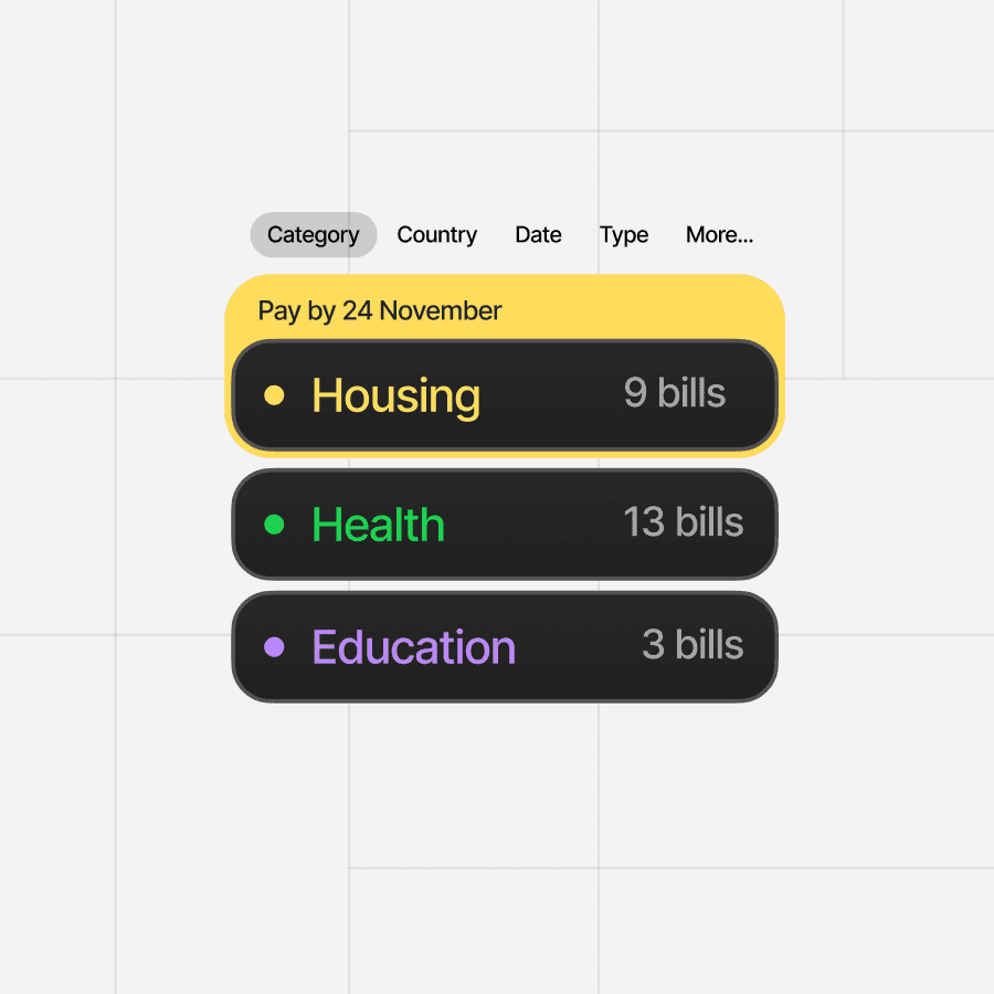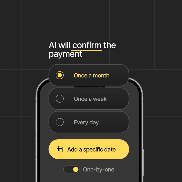 You define the scope of AI Family Treasury — where bills are collected from and how they are handled. Payments can be approved one-by-one or in groups — daily, weekly, or monthly.